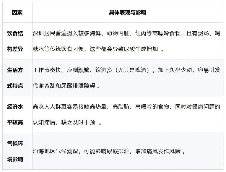 深圳高尿酸比例高于内地的主要原因包括: