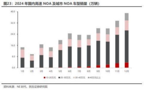 区域试点增加和利好政策驱动 L3 智能驾驶落地,车企技术不断升维下紧扣可靠性和安全性要求 。10-20 万元作为整车销量主力 ,2024 年国 内搭载高速 NOA 及城市 NOA 的车型销量中 10 万-20 万元价格带车型搭载数量 , 占 比仅 5.0% , “智驾平权 ”通过将高阶智驾功能下放至低价格带 ,能够使大众消费者真正获得智驾体验 ,提升消费者购车决策中的智驾权重 ,驱动智能驾驶渗透率增长 ,引领智能驾驶行业深入发展。Robotaxi 商业化落地在即,或于 2026 年开始规模化落地,24 小时运营和基于算法的智能调度能力驱动规模效应实现 ,成本和营收优势将逐步显现 ,2030 年 Robotaxi 市场规模将达数千亿 ,具备强大潜力和吸引力 。