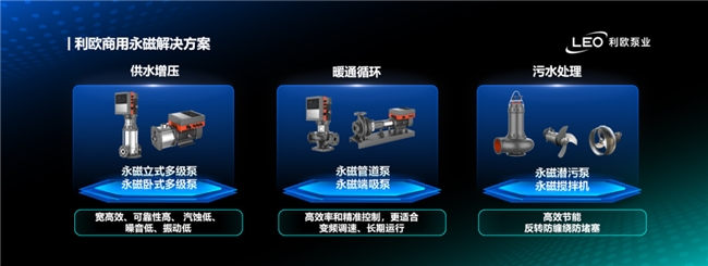 面对制造业转型升级对节能改造的迫切需求,永磁技术凭借高效率、低能耗、长寿命等核心优势,成为泵业节能改造的关键突破口。利欧泵业在利欧董事长的战略引领下,早在2018年便前瞻性地布局永磁技术赛道,通过全产业链技术攻关与精准的生产基地规划,于2025年正式推出覆盖全场景的永磁产品矩阵,以超越IE5的能效标准重新定义行业标杆,实现从民用、商用至工业领域的全面渗透。