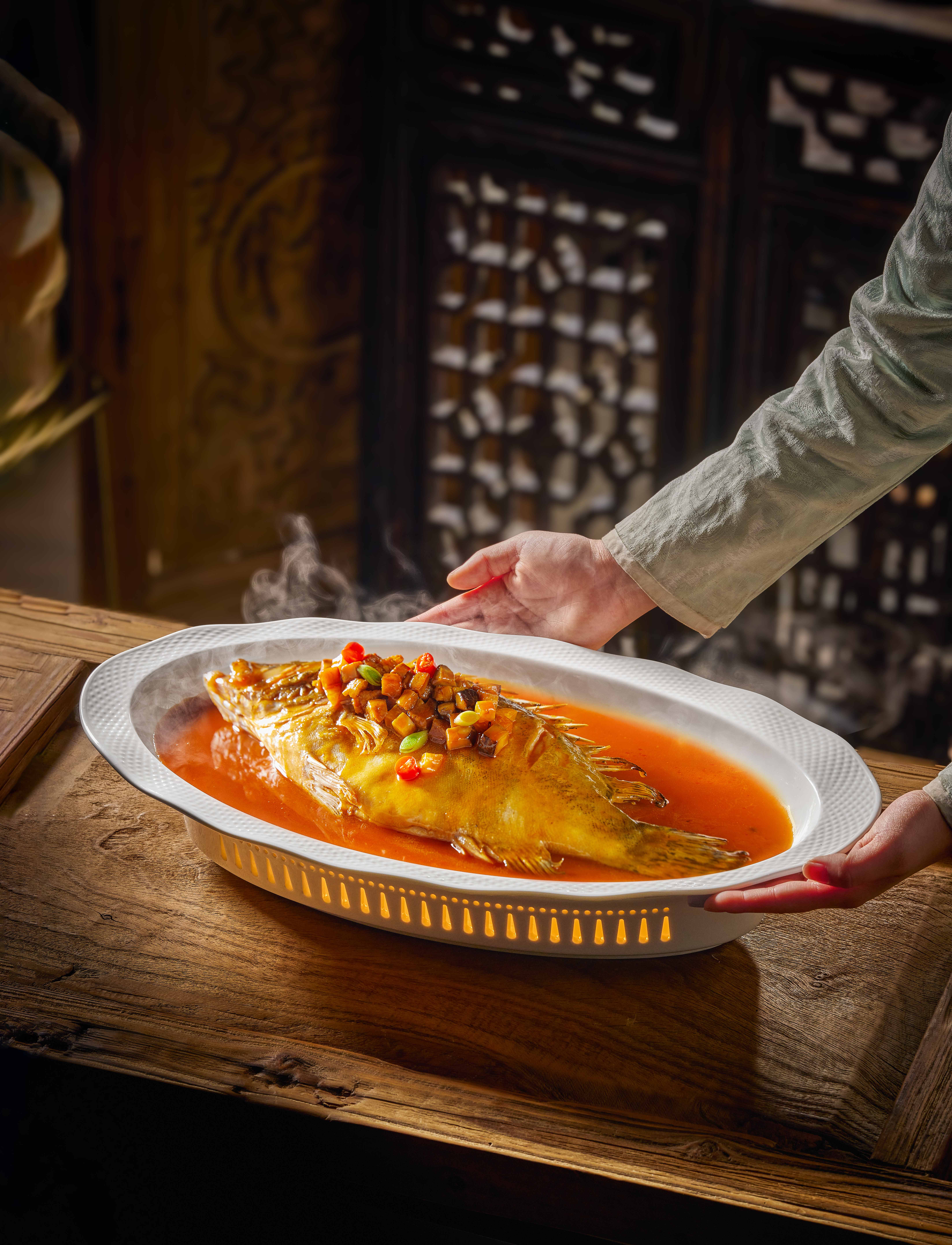 伍俊峰: 融合的核心是“徽菜定调,他者添彩”。我们以徽菜的“重油、火工、本味”为铁律;传承传统徽菜技艺,结合现代技法,让徽菜的基因永远在场,其他菜系锦上添花。所有的菜品的底色是徽菜的精髓。