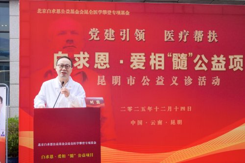 2025年12月14日,由北京白求恩公益基金会昆仑医学攀登专项基金(以下简称“昆仑攀登专项基金”)发起的白求恩·爱相“髓”公益项目落地云南省第一人民医院。昆仑攀登专项基金发起人、复旦大学附属中山医院血液科主任刘澎教授携科室邹善华主任医师、庄静丽副主任医师、袁玲主治医师,联合云南省第一人民医院血液内科主任王娅婕及科室多位医护人员,共同为近百名血液病患者提供公益诊疗服务。北京白求恩公益基金会秘书长刘静,复旦大学附属中山医院血液科主任刘澎,云南省第一人民医院副院长宋正己、血液科党委书记辜学忠、血液科主任王娅婕等出席此次活动。