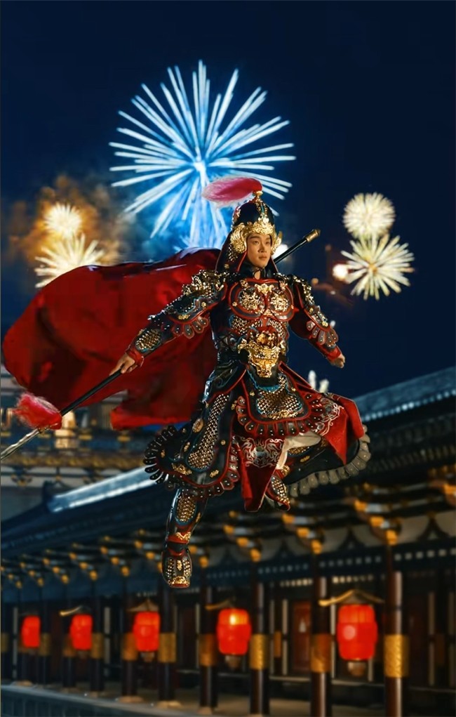 从最初对爷爷木雕“长安”的不解与抗拒,到在奇幻的微缩长安世界里与儿时的自己相遇、对峙,他最终读懂了“名字”与“记忆”的重量。最终,他身着威武唐甲,披风猎猎,银枪骏马,在由爷孙共同搭建的新长安城楼前巍然伫立——这不仅是一场震撼的国风视觉变装,更是主角蜕变为“长安文化守护者”的具象化升华,也是《长安幻想》携手国风文化创作者献上的长安视听盛宴。