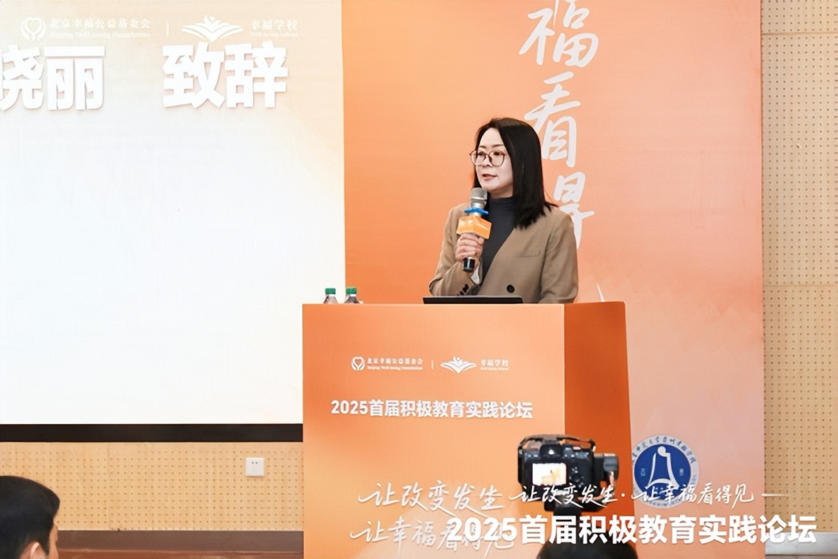 北京幸福公益基金会理事长王晓丽作为主办方代表致辞。她指出,积极教育正在中国教育领域展现出蓬勃生命力——截至2025年10月,“幸福学校”项目已覆盖190所学校,惠及教师2.6万余人、学生37.5万余人,形成了规模化的实践网络。她在致辞中强调:“积极教育不仅是关注学生的心理健康,更聚焦于品格塑造与潜能激发,是推动教育高质量发展的关键路径。”