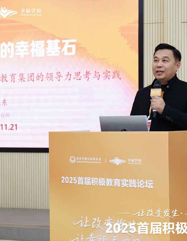2025年11月21日至23日,由北京幸福公益基金会与浙江省台州市黄岩区教育局联合主办、北京师范大学台州实验学校承办、北京速途网络科技股份有限公司提供媒体支持的“2025首届积极教育实践论坛”在浙江台州圆满举行。论坛以“让改变发生,让幸福看得见”为主题,通过主论坛报告、四大平行分论坛、区域实践展示与幸福科学馆参访等多元形式,系统呈现了中国积极教育从理念探索走向学校实践、从单点突破走向区域构建的最新成果。
